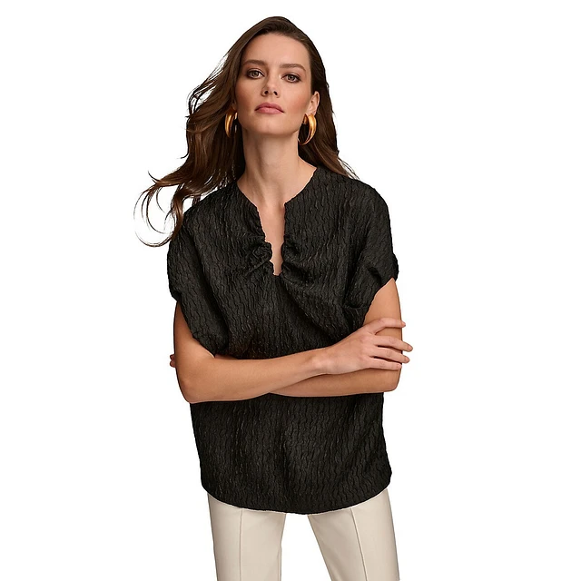 V-Wire Textured Cap-Sleeve Top