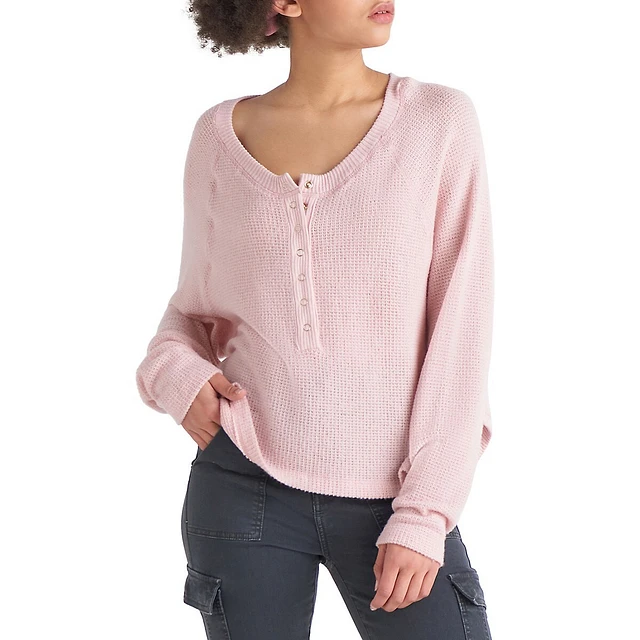 Waffle-Knit Henley Top