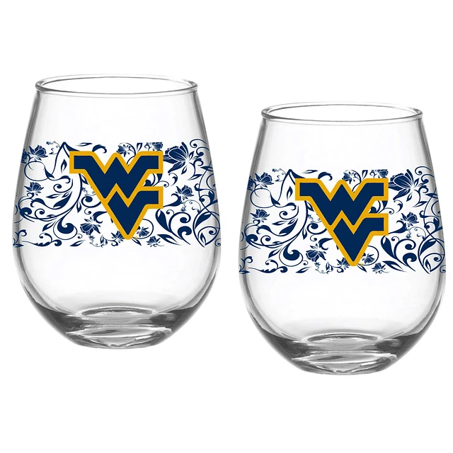 West Virginia Mountaineers Two-Pack 15oz. Floral Stemless Glass Set