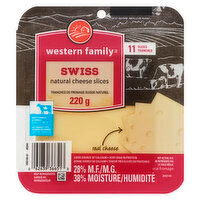 Western Family - Natural Cheese Slices, Swiss, 220 Gram