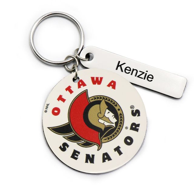 White Ottawa Senators Personalized Leather Round Keychain