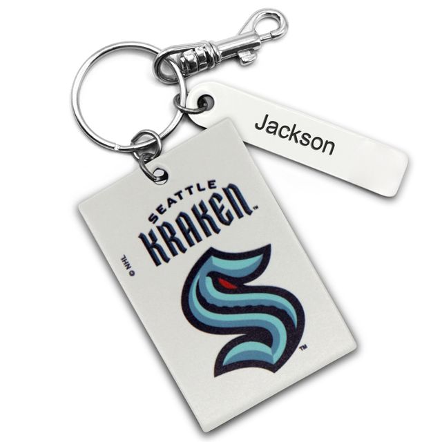 White Seattle Kraken Personalized Leather Rectangle Keychain