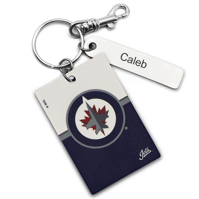 White Winnipeg Jets Personalized Leather Rectangle Keychain