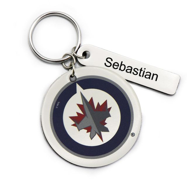 Navy Winnipeg Jets Personalized Leather Rectangle Bag Tag