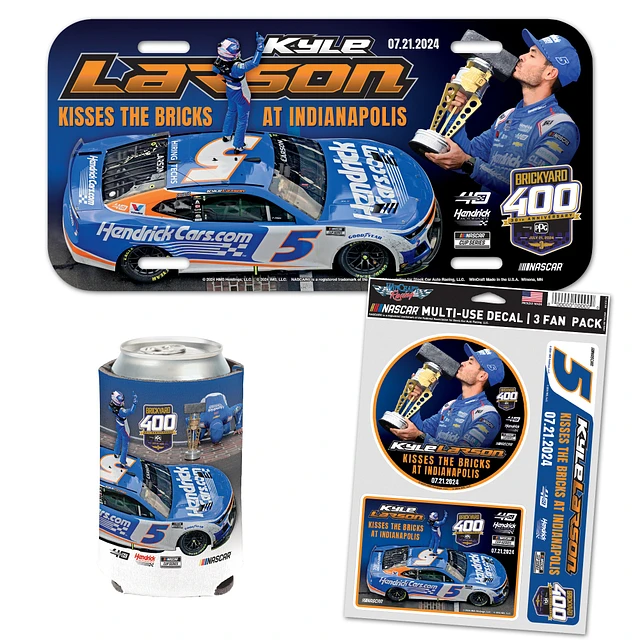 WinCraft Kyle Larson 2024 Brickyard 400 Race Win Three-Piece Can Cooler, License Plate & Three-Pack Fan Decal Set