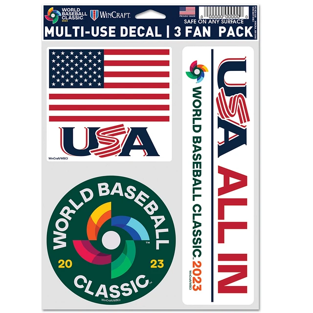 WinCraft USA Baseball 2023 World Baseball Classic Fan Multi-Use 3-Pack Decal Sheet