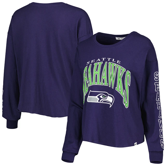Women's '47 College Navy Seattle Seahawks Skyler Parkway Cropped Long Sleeve T-Shirt