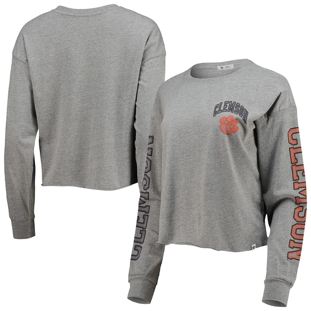 Women's '47 Heathered Gray Clemson Tigers Ultra Max Parkway Long Sleeve Cropped T-Shirt