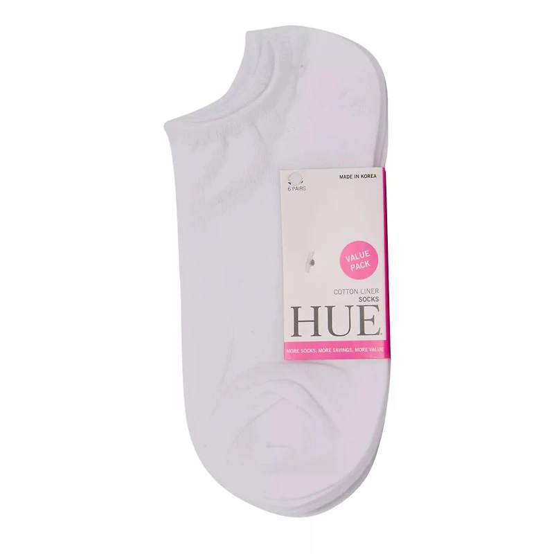 Keep your feet healthy with these women's Hue white 6-pack cotton no show sport socks. Crafted using cozy cotton, nylon, and spandex for breathability and performance, these lightweight athletic socks have elastic topline for keeping the sock intact, seamed toe and heel for extra durability and stretches just over the toes and around your heel so you can wear them with sneakers or flats.