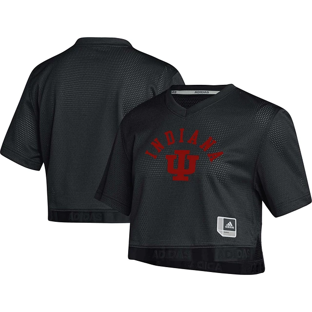 Women's adidas Black Indiana Hoosiers Primegreen V-Neck Cropped Jersey