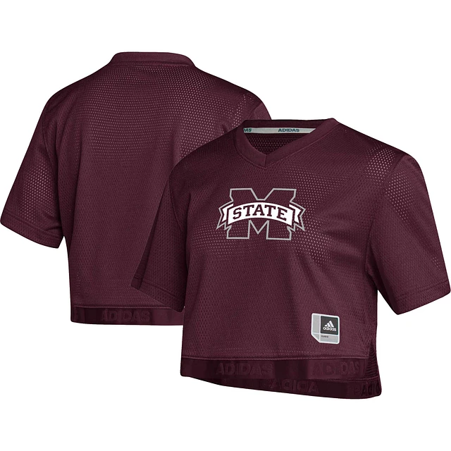 Women's adidas Red Mississippi State Bulldogs Primegreen V-Neck Cropped Jersey