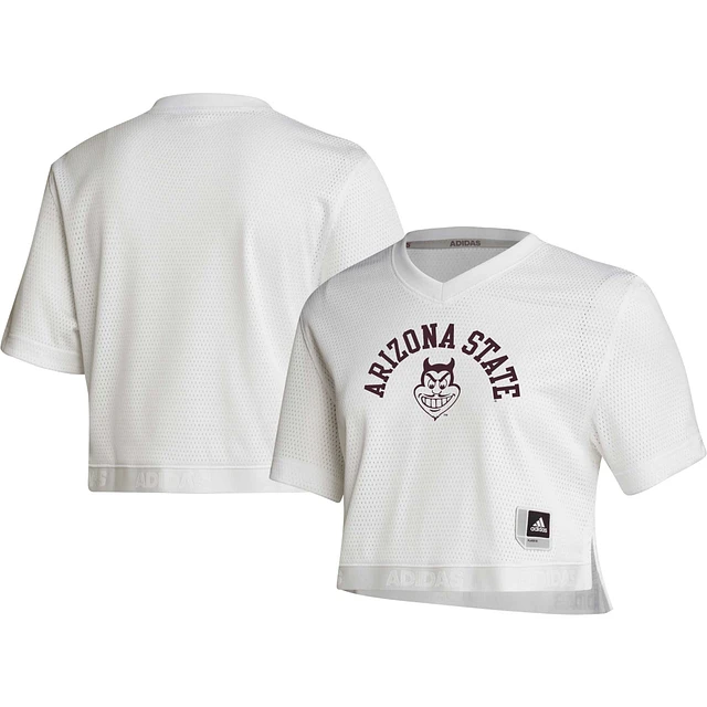 Women's adidas White Arizona State Sun Devils Primegreen V-Neck Cropped Jersey