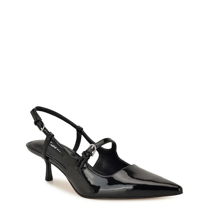 Stay fashionable in the Nine West Amayo dress pumps. Featuring a pointy toe, adjustable slingback strap and a mid stiletto heel. These pumps are sure to impress and the perfect wardrobe! Founded in 1978, Nine West empowers women to take on the world in style, from day to night.