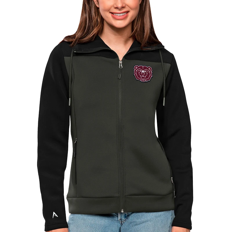 Women's Antigua Black/Charcoal Missouri State University Bears Protect Full-Zip Jacket