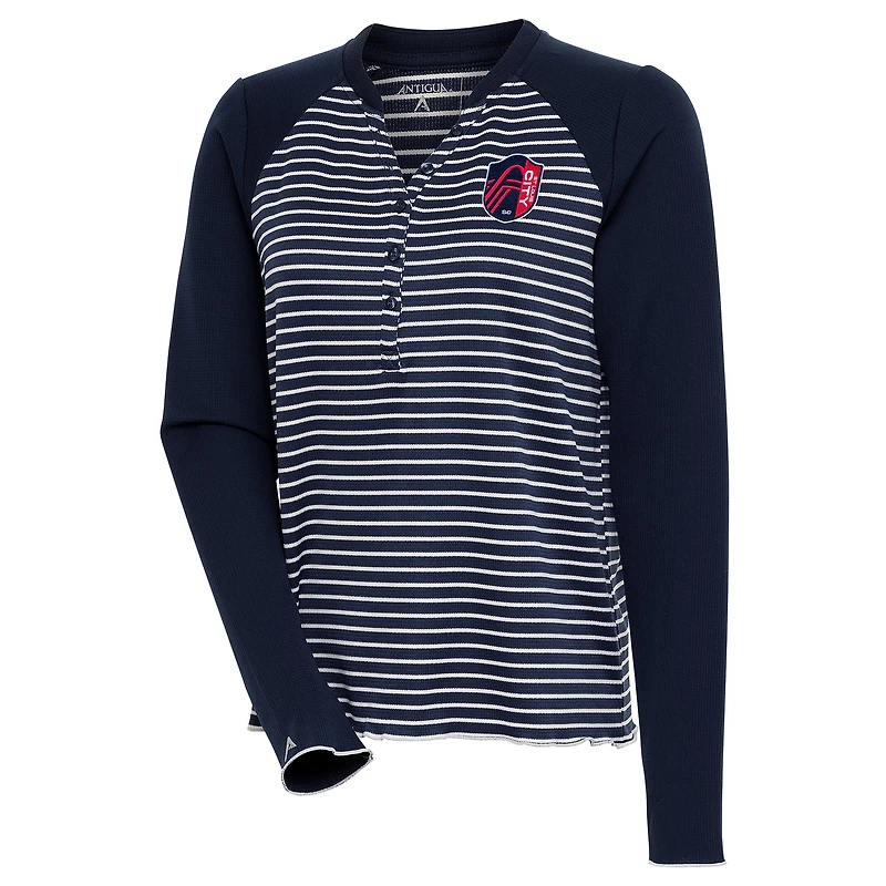 Women's Antigua Navy St. Louis City SC Maverick Henley Long Sleeve T-Shirt