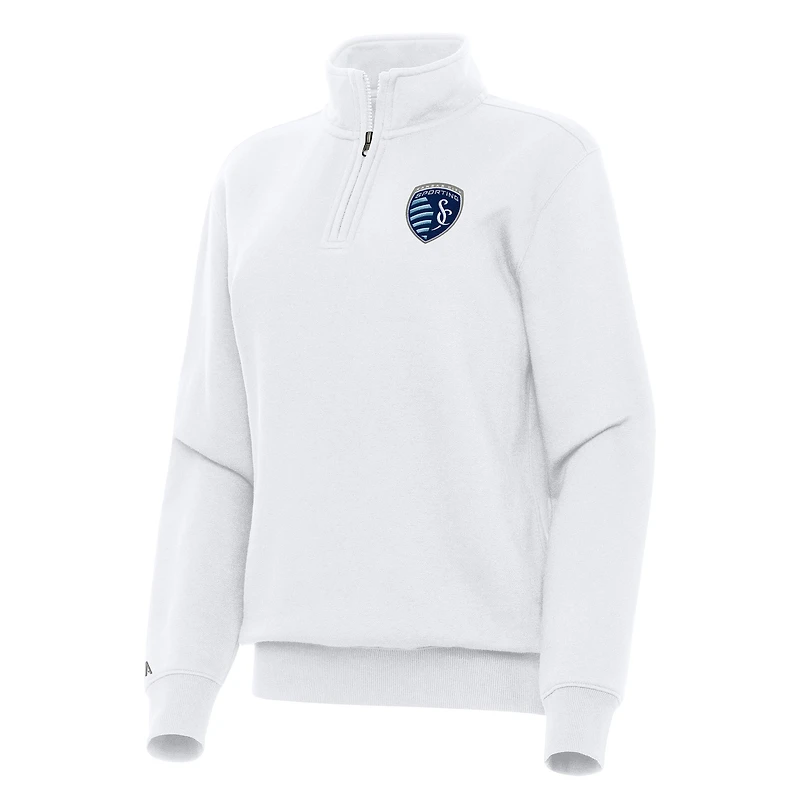 Women's Antigua White Sporting Kansas City Victory Quarter-Zip Pullover Top