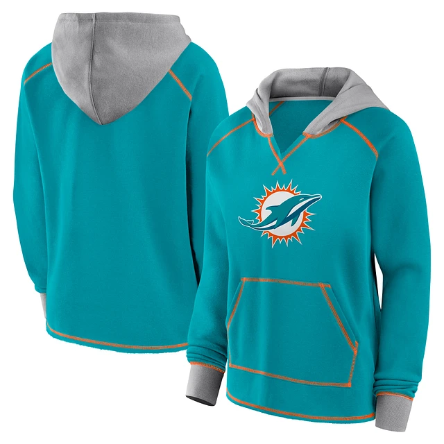 Women's Aqua Miami Dolphins Boom Fleece Pullover V-Neck Hoodie