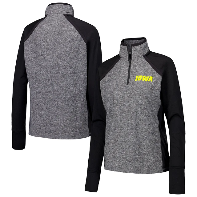 Women's Black/Heather Gray Iowa Hawkeyes Finalist Raglan Quarter-Zip Jacket