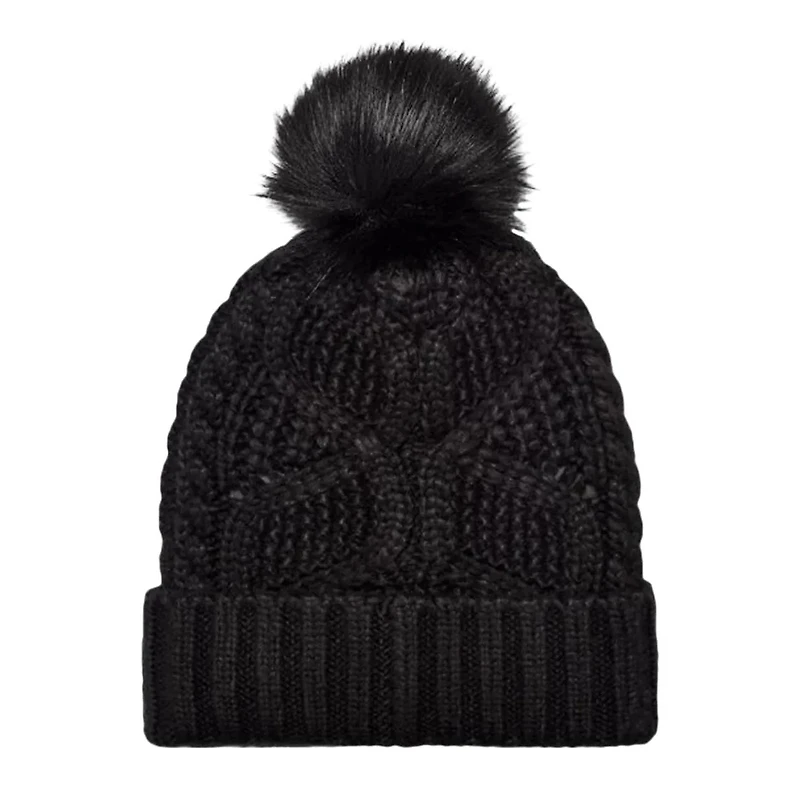 Enjoy the cold days with the UGG black cable beanie. This cable knit beanie is made with mixed materials for comfortable wear. A fuzzy pom-pom maximizes the chic, cozy style, while genuine leather UGG logo brings an authentic touch.