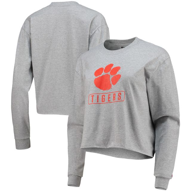 Women's Champion Gray Clemson Tigers Boyfriend Cropped Long Sleeve T-Shirt