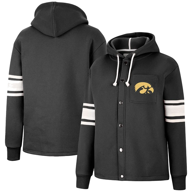 Women's Colosseum Black Iowa Hawkeyes Mia Striped Full-Snap Hoodie Jacket