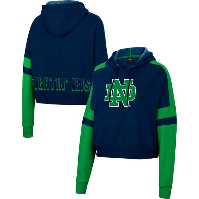 Women's Colosseum Heather Navy Notre Dame Fighting Irish Throwback Stripe Arch Logo Cropped Pullover Hoodie