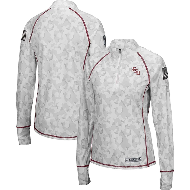 Women's Colosseum White Florida State Seminoles OHT Military Appreciation Officer Arctic Camo Fitted Lightweight 1/4-Zip Jacket