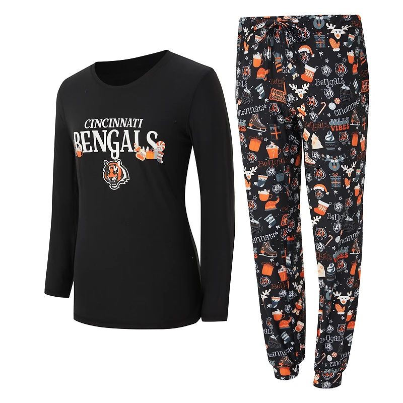 Women's Concepts Sport Black Cincinnati Bengals Chesnut Long Sleeve T-Shirt and Pant Sleep Set