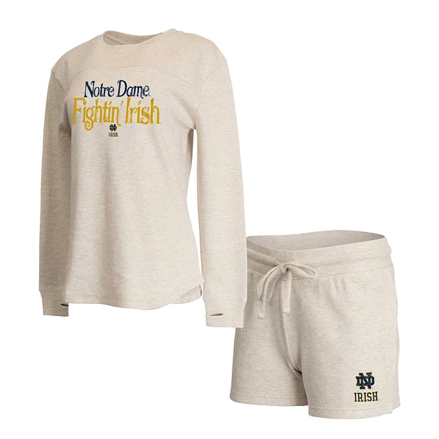 Women's Concepts Sport Cream Notre Dame Fighting Irish Waffle Fabric Long Sleeve T-Shirt & Shorts Set