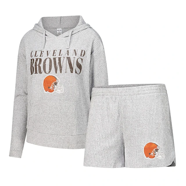 Women's Concepts Sport Gray Cleveland Browns Juniper Long Sleeve Hoodie T-Shirt & Shorts Set