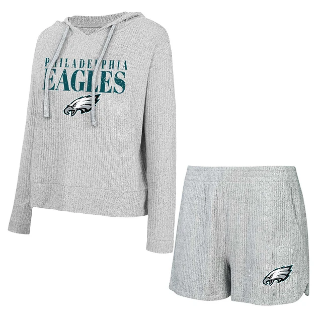 Women's Concepts Sport Gray Philadelphia Eagles Juniper Long Sleeve Hoodie T-Shirt & Shorts Set