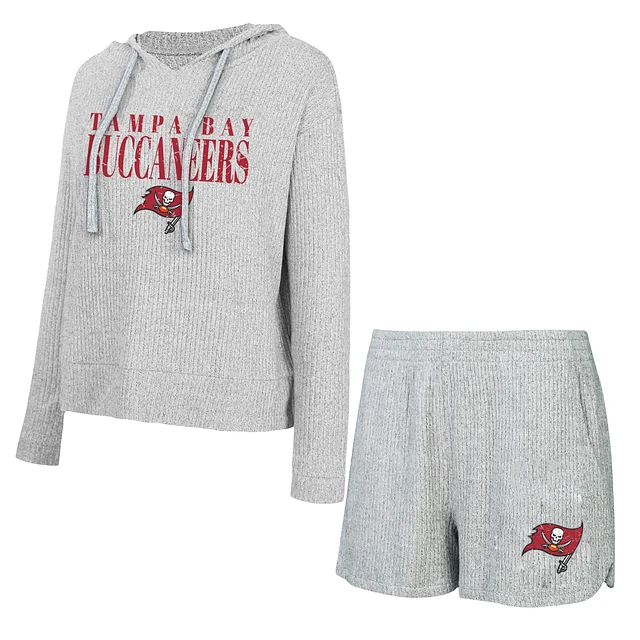 Women's Concepts Sport Gray Tampa Bay Buccaneers Juniper Long Sleeve Hoodie T-Shirt & Shorts Set