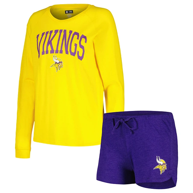 Women's Concepts Sport Purple/Gold Minnesota Vikings Raglan Long Sleeve T-Shirt & Shorts Lounge Set