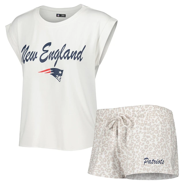 Women's Concepts Sport White/Cream New England Patriots Montana Knit T-Shirt & Shorts Sleep Set