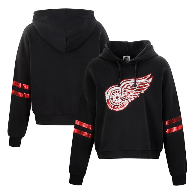 Women's Cuce Black Detroit Red Wings Sequin Cropped Pullover Hoodie