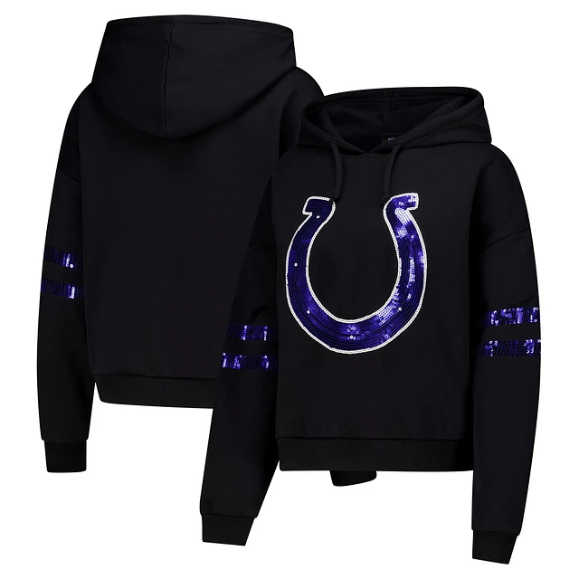 Women's Cuce Black Indianapolis Colts Cropped Sequins Pullover Hoodie