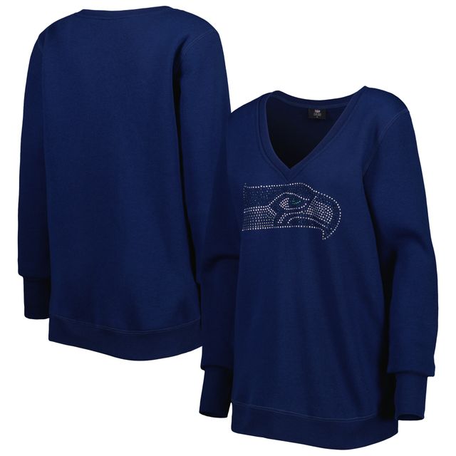 Women's Cuce College Navy Seattle Seahawks Deep V-Neck Pullover Sweatshirt