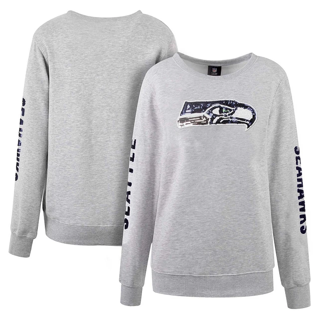 Women's Cuce Heather Gray Seattle Seahawks Sequined Logo Pullover Sweatshirt