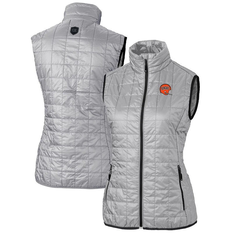 Women's Cutter & Buck Gray Cincinnati Bengals Throwback Logo Rainier PrimaLoft Eco Full-Zip Puffer Vest