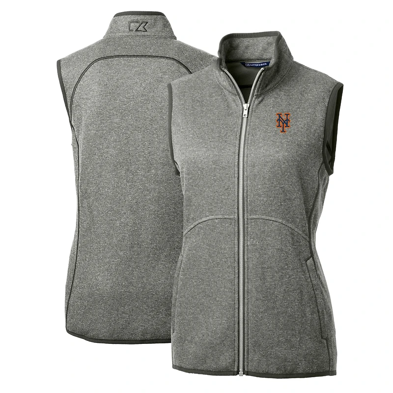 Women's Cutter & Buck Heathered Gray New York Mets Mainsail Sweater-Knit Full-Zip Vest in Vernon, BC