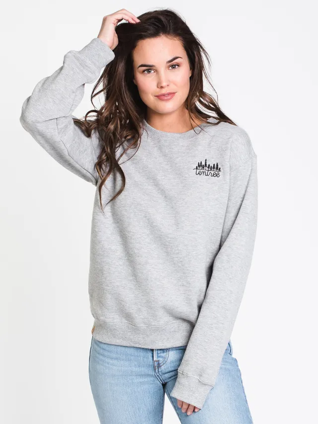 WOMENS EMB LONG SLEEVE CREW - GREY HTHR CLEARANCE