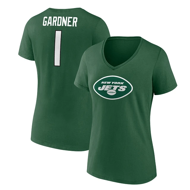 Women's Fanatics Ahmad Sauce Gardner Black New York Jets Player Icon Name & Number V-Neck T-Shirt