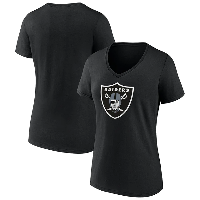 Women's Fanatics Black Las Vegas Raiders Icon Primary Logo V-Neck T-Shirt