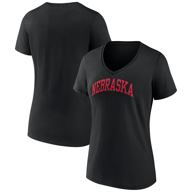 Women's Fanatics Black Nebraska Huskers Basic Arch V-Neck T-Shirt