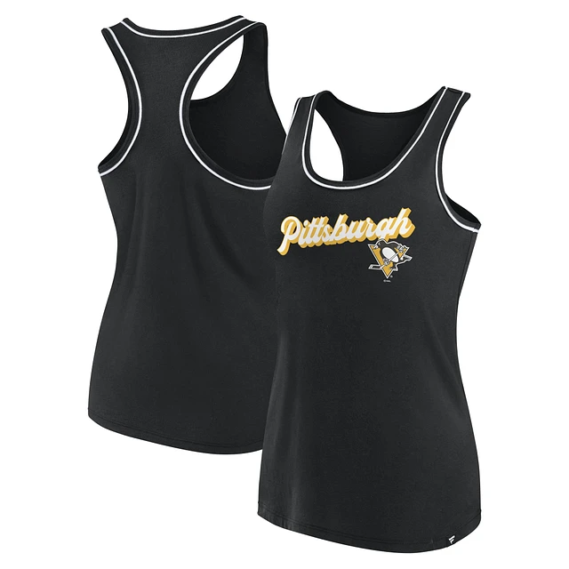 Women's Fanatics Black Pittsburgh Penguins Wordmark Logo Racerback Scoop Neck Tank Top