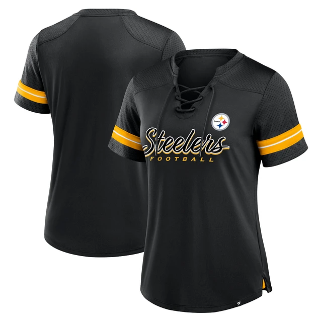 Women's Fanatics Black Pittsburgh Steelers Play Script Lace-Up T-Shirt
