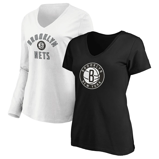 Women's Fanatics Black/White Brooklyn Nets V-Neck T-Shirt Combo Pack