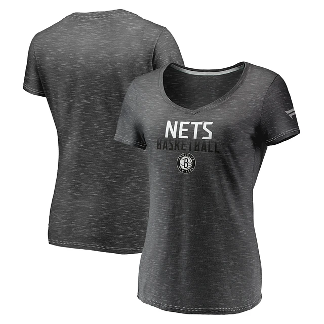 Women's Fanatics Charcoal Brooklyn Nets Double-Fade Space-Dye V-Neck T-Shirt