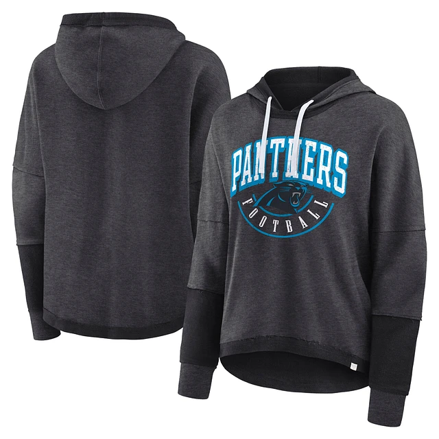Women's Fanatics Charcoal Carolina Panthers Lightewight Modest Crop Lounge Helmet Arch Pullover Hoodie