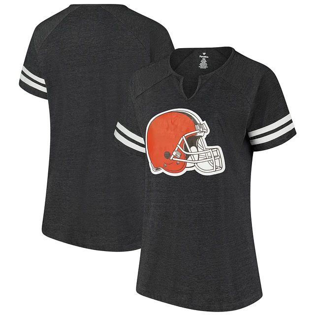 Women's Fanatics Charcoal Cleveland Browns Plus Logo Striped Raglan Notch Neck T-Shirt